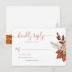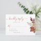 Modern rustic watercolor botanical flowers, pumpkin, foliage, and dried leaves making a chic autumn fall wedding invitation kindly reply script RSVP card with a trendy handwriting calligraphy script and an earthy terracotta beige colour palette