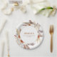 Boho birthday party paper plates in terracotta burnt orange and white. Beautiful modern design with hand painted botanical accents. Features pampas grass, dried banana leaves and roses. Trendy bohemian desert theme perfect for fall, winter, spring or summer. Perfect for a stylish bday celebration.
