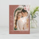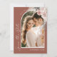 This Boho Terracotta Pampas Grass Photo Wedding Save the Date Card will help you share the good news of your engagement and upcoming wedding. This minimalist style features two photos on a terracotta earth tone background with an arch design and modern script font. Beautiful watercolor florals with papas grass and eucalyptus accent the card. Personalise with your own photos and details about your wedding.