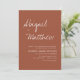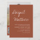 Personalise this Boho Simple Elegant Terracotta Burnt Orange and White Stylish Invitation with your message and details with a elegant photo on the back with QR Code RSVP. This minimalist invitation includes stylish handwritten script typography with a modern colour for the special Wedding day celebration.