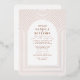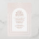 A unique design with multiple delicate arch lines surrounding your wedding invitation information in rose gold foil stamped, over a white background with all text in terracotta. On the back add your wedding details and rsvp information.