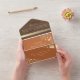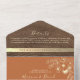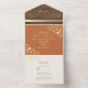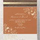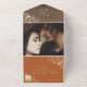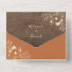 Elegant, boho, modern, simple wood terracotta all-in-one wedding invitation with faux gold floral lace and custom picture of the couple at the back.