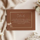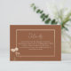 Share important information with your guests using this boho terracotta wedding details enclosure card. Designed with earthy tones, modern minimalist script, and soft floral accents, this insert is ideal for fall weddings, rustic celebrations, or desert-themed events. Easily customise to include your wedding website, RSVP info, directions, accommodations, or reception details. A stylish and practical addition to any modern boho invitation suite.