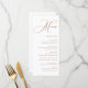 Set the tone for your reception with this customisable wedding menu card featuring whimsical calligraphy and a clean, elegant layout. Designed to suit any wedding theme or season, this menu card adds a thoughtful finishing touch to your table settings while keeping guests informed about the meal.