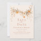 Announce your big day with this Boho Terracotta Wildflowers Save the Date Card. Featuring a relaxed watercolor floral design in warm burnt orange and earthy terracotta hues, this card captures the essence of a cosy autumn celebration. The natural wildflower arrangement adds a rustic, bohemian charm, perfect for outdoor, countryside, or fall weddings. Soft, romantic, and effortlessly elegant – a perfect first glimpse into your wedding style.