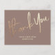 Boho Light brown Thank You Elegant Universal Postcard featuring modern script calligraphy text in faux gold foil
