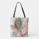 Boho Tribal Chic Peacock Feather & Roses Tote Bag