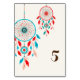 Boho Tribal feather Dreamcatcher Wedding Table Number