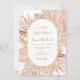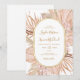 This boho tropical botanical casual wedding invitation is perfect for your elegant rustic floral, green, peach, rose gold wedding. Design features a gold frame or bouquet with modern blush pink pampas grass, simple sage, ivory, champagne palm leaf, and classic beach greenery. The flowers may include pink rose and orchid. The design is ideal for a classy vintage terracotta, beige, rust, winter, spring, fall wedding. Please find other matching or coordinating wedding stationery in the rest of the collection suite.