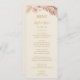 This boho tropical botanical | ivory wedding dinner menu is perfect for your elegant rustic floral, green, peach, rose gold wedding. Design features a gold frame or bouquet with modern blush pink pampas grass, simple sage, ivory, champagne palm leaf, and classic beach greenery. The flowers may include pink rose and orchid. The design is ideal for a classy vintage terracotta, beige, rust, winter, spring, fall wedding. Please find other matching or coordinating wedding stationery in the rest of the collection suite.
