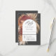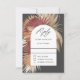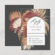 A beautiful mix of tropical dried fan palms framing your text in a popular geometric arched frame add a distinctive appeal to this wedding response card. The warm neutral colour palette is a versatile choice throughout the year and is especially lovely for summer or fall weddings. Shown here with a charcoal grey background, other colours are available. Personalise the text template with your required RSVP date.