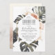 With modern boho style, this Graduation Party Invitation has flowing Monstera leaf foliage with soft peach and white floral elements including orchids and sweetheart roses in off-white and terracotta peach. A trendy geometric triple frame in shimmering gold surrounds the text elements of the design. This invitation is a great choice for pool parties, or graduation celebrations with a tropical theme or in beach coastal cities and towns. Personalise the text template with your party details.