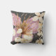 A modern rose gold boho style cottage core throw pillow emphasizing the best of nostalgic floral accents on a modern grey background. Creamy colours, and watermelon pinkish vibes burst out in this blended style of old and new.