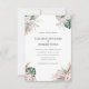 The front of the invitation features carefully crafted compositions of tropical elements in each of the four corners. Trópusi orchids, monstera leaves, palm leaves, and pampas grass elegantly frame the invitation text, harmonising with one another to create a visually stunning arrangement. The boho elegant font used for the text adds a touch of sophistication, enhancing the overall elegance of the design.