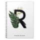 Customisable letter R monogram notebook featuring watercolor tropical palm leaf, faux gold foil leaf and black watercolor brush accents. Personalise this tropical monogram notebook by your name or other details. This boho letter R monogram notebook will be perfect as a gift. Other letters are available.