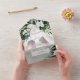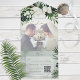 AVAILABLE WITH OR WITHOUT A QR CODE OR DINNER OPTIONS. This design features beautiful, lush tropic greenery and white florals on a soft lush green watercolor background. Personalise it with your own special photo. Perfect for the destination or beach wedding. Created by Simply Farmhouse Press.