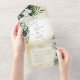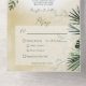 AVAILABLE WITH OR WITHOUT DINNER OPTIONS. ALSO AVAILABLE WITH A QR CODE IN THE RSVP AREA. This design features beautiful, lush tropic greenery and white florals on a soft sand yellow watercolor background. Perfect for the destination or beach wedding. Created by Simply Farmhouse Press.