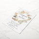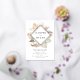 Modern tropical wedding invitations featuring your names inside of a diamond-shaped gold foil frame with a white background. Tropical flowers and foliage surround the frame in earthy shades of cream, tan, beige, rust, brown and sage green. The tropical boho wedding invitations reverse to a light sage green watercolor background.