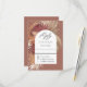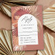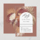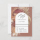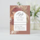 A beautiful mix of tropical dried fan palms framing your text in a popular geometric arched frame add a distinctive appeal to this wedding response card. The warm neutral color palette is a versatile choice throughout the year and is especially lovely for summer or fall weddings. Shown here with an earthy terracotta background, other colors are available. Personalize the text template with your required RSVP date.