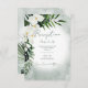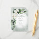 This wedding reception card design features beautiful, lush tropic greenery and white florals on a soft green watercolor background. Perfect for the destination or beach wedding. Created by Simply Farmhouse Press.