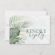 Complete your destination wedding suite with this elegant tropical RSVP card, featuring original watercolor monstera leaves, lush palm fronds, and vibrant botanical greenery. Designed for beach, island, or coastal celebrations, this fresh and modern layout beautifully complements tropical, boho, or summer wedding themes. With space to personalise your reply details, meal selections, or special notes, this card helps your guests respond with ease. A stylish and cohesive addition to your exotic wedding stationery set.