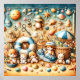 Bring a touch of serenity and whimsy to your nursery with this generative boho wall pinned beach poster. Featuring shells, toys, sun and other sea goods pinned to the wall, This artwork is designed to soothe and inspire your little one's imagination. The boho earthy hues create a calming atmosphere, perfect for a peaceful nursery setting. This unique piece is ideal for parents who want to introduce their child to the beauty of the beach while maintaining a stylish and cosy space.