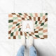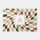 Boho Warped Chequerboard Monogram Doormat. Shown in earth tone palette in shades of browns and greens, but ALL COLORS ARE EDITABLE. You can select 5 different colours for the chequerboard, as well as the background, and monogram elements. Personalise the template with your monogram initial. © Kimbellished, LLC