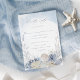 This lovely ethereal ocean themed dusty blue wedding rsvp card with menu options is perfect for summer beach destination weddings. The coastal chic design has a variety of delicate watercolor coral, starfish and seashells and elegant stylish text with a modern script calligraphy font.