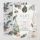 This warm and cosy boho Christmas holiday boy baby shower invitation features holiday favourite items such as mistletoe, pine cones, a christmas stocking, christmas tree with gifts, a candle, a blanket and pine leaves in watercolor. The reverse side features a light blue background with holiday foliage patterns. Personalise it for your needs. You can find matching products at my store.