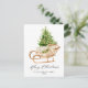 Simple, yet elegant non-photo holiday postcard featuring a boho watercolor sleigh filled with a Christmas tree and gifts. "Merry Christmas" is displayed below in a beautiful calligraphy script. Personalise the front of the postcard by adding your name and the year. The stylish holiday postcard reverses to feature your return address and custom message.