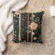 Boho Watercolor Florals Stripes Gold Pink Black Cushion