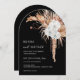 This elegant contemporary arched wedding invitation features watercolor painted orchid flowers and pampas grass on a blackbackground.