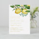 Invite guests to your event with this customisable foil-pressed bridal shower invitation. It features a watercolor bouquet of lemons and white lemon blossoms. Personalise this lemon bridal shower invitation by adding your event details. This gold foil bridal shower invitation is perfect for spring and summer bridal showers.