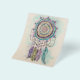 A modern tribal hand-painted dreamcatcher mandala aesthetic design featuring an elegant hand-drawn flower, feathers, and flowers. The artwork is painted with watercolor splatter effects, giving it a unique craft appearance. This Aztec and traditional dreamcatcher design is pretty, dreamy, and magical, making it perfect for special occasions and celebrations.
