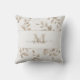 This pillow features a custom monogram, script name, sand beige, and white leaves on a neutral background. Ideal either for boho indoor or outdoor home decoration.