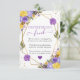 Elegant Boho Watercolor purple and yellow Spring flowers and foliage design with gold geometric frame