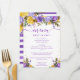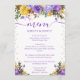 Elegant Boho Watercolor purple and yellow Spring flowers and foliage design on white background