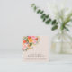 Elegant hand painted business cards featuring a watercolor spring wildflower bouquet in shades of pink, red and peach, accented with greenery. Add your name and business name or title/occupation along the bottom, against a pale blush pink background. Cards reverse to white lettering on a contrasting dark green background. Includes three social media icons. A unique and elegant choice for any business.