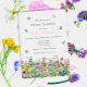 Bohemian and summery, this bridal shower invitation features a brightly coloured field of delicate wildflowers with butterflies, bumble bees and ladybugs.