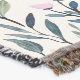 A quality printed throw has its advantages. This is a much finer weave throw than its loopier cousins, and though lighter, it is worth the investment for custom room accessorizing. The back is much prettier than the typical brown, and the fringe on the long sides very vivid, the selvage nicely done. Before photographing, I washed the throw in cold water, delicate, with a thicker woven throw the same size. On tumble dry low, this throw was dry in half the time as the other. This is a very practical quality if you use throws for furniture covers or to wrap up in frequently. The sleekness of the fabric makes it a great layer for accenting or protecting without the feeling of sitting on too much stuff. Perfect for napping or when you feel a light chill coming on. The color printing is beautiful and on this fabric, matched the design and color of my Photoshop image. This is an advantage for blending room fabrics and colors. The fringe on the short sides prints the colors from the design image and therefore varies from the side fringe. I streaked a white fractal line through the plaid pattern to give the illusion of weaving. This printed as crisp as an illusory thread, and put some white in the short side fringe, showing another advantage of print vs loomed- for artistic purposes, line lines, detail, and color integrity can be planned and preserved. My loomed throws have color limitations and more of a needlepoint texture. Print throws reproduce an exact image. The throw felt a little stiff straight out of the package, but this went away in the first delicate wash. Of course I searched the wash water for ink or bleeding and there was none.
