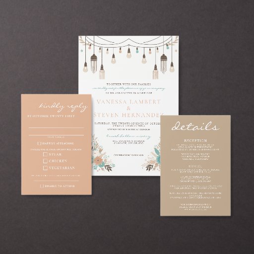 A pop of turquoise compliments this beautiful boho set or invites you already have! If you need further assistance customising this design, please send us a message, we are happy to help.
