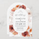 A floral wedding invitation inspired by rustic earthy warm rust and terracotta hues of nature, for an earthy boho style with typography within a floral frame.