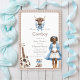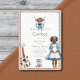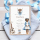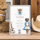 Welcome your little buckaroo with this adorable boho Western baby shower invitation. This design showcases a heartwarming illustration of a pregnant mum in a blue cardigan and cowboy boots, alongside a rustic acoustic guitar and tiny cowboy boots, all set against a cosy plaid background. The soft blue floral accents add a touch of gentle elegance, creating a unique and memorable invitation for your special event. It's an ideal choice for parents looking for a unique and stylish way to announce their baby shower.