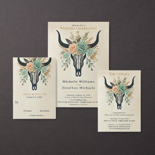 Floral Cow Skull Boho Western Wedding SetDesigned by Michelle Istanish