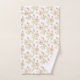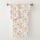 A lovely design with peach and cream coloured flowers on a white background bath towel set. The set includes a bath towel, hand towel and wash cloth. These make great bridal shower or wedding gifts, or buy them to spruce up your bathroom.