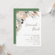Bold floral wedding invitation featuring one floral arrangement in the top left hand corner of the invitation with white protea, purple berries, blue gray foliage and some pampas grass.