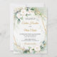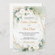 Boho White roses green eucalyptus faux gold frame Invitation
