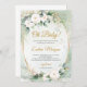 Boho white roses greenery foliage gold oval Baby Invitations,