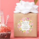 A Boho pretty wild flowers garden bridal shower thank you favour sticker with hand painted floral illustration in pink, yellow, peach wild meadow flowers and roses, sage green eucalyptus and greenery on editable white. Perfect for summer, outdoors bridal parties and weddings.