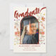 Celebrate Your Daughter’s College Graduation with a Beautiful Photo Announcement Card. Mark your daughter’s graduation with this Modern Script Calligraphy Graduation Photo Announcement Card, designed to capture the spirit of the occasion. Featuring elegant burnt orange calligraphy and a whimsical watercolor wildflower arch, this card exudes warmth and charm. The front showcases your daughter’s name and graduation details in burnt orange script typography on a soft beige background, while the back highlights additional information in modern calligraphy.